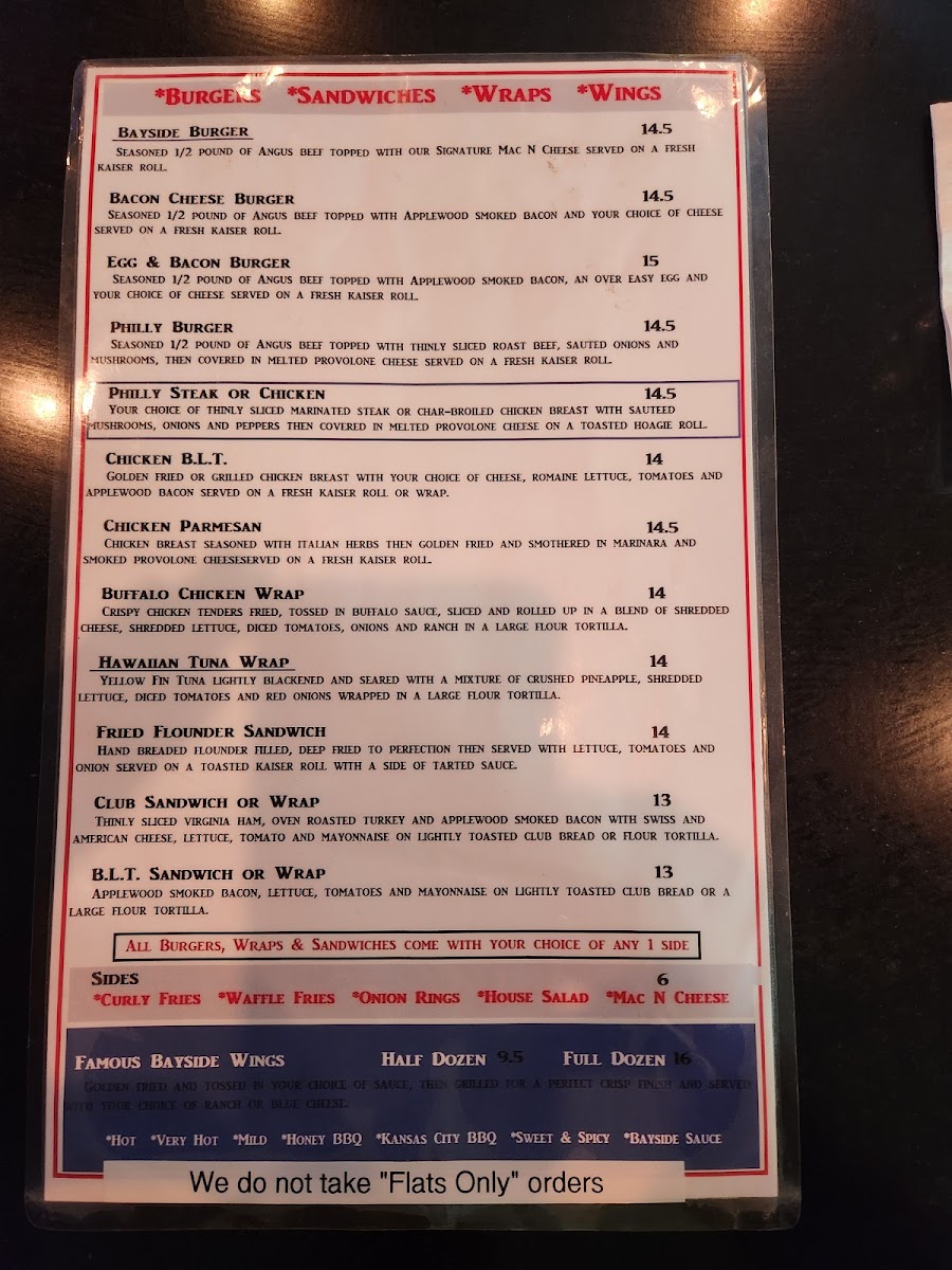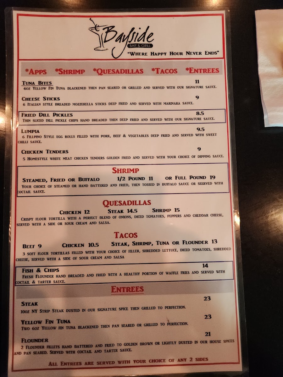 Bayside Bar & Grill Menu
